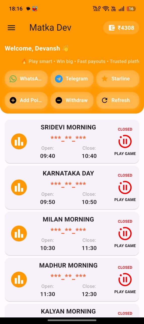Welcome to the amazing world of Matka dev. Our website is the official Matka site for real Matka players. We are the most famous MATKA website in the world, loved by people involved in SATTA BAZAR in Time Bazar, Milan Day/Night, Kalyan Matka, Rajdhani Day/Night Satta, Mumbai Main, and more. At Matka dev, we provide the fastest and most accurate results and predictions, and we are the only ones who can help you earn huge amounts of money.